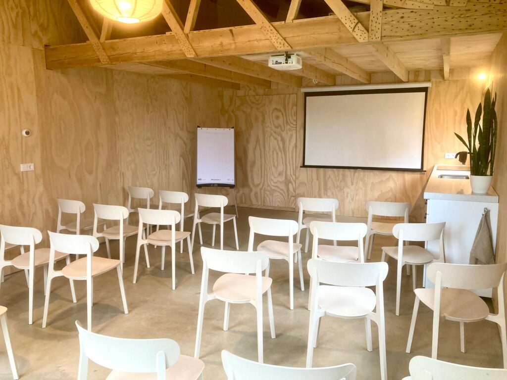 De Woldstee biedt plek voor groepen tot circa 30 personen en is voorzien van alle basisfaciliteiten om samen te komen, te leren of te reflecteren. Of je nu een teamdag organiseert, een training geeft of in stilte wilt werken aan een nieuw idee – de natuurlijke omgeving helpt om te vertragen, te verbinden en op te laden.